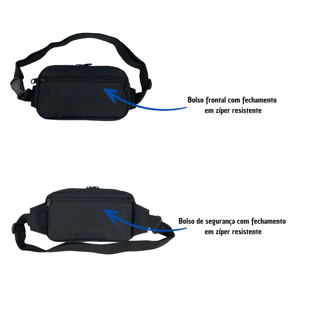 Pochete de ótima capacidade ideal para quem precisa carregar vários objetos.Com fácil acesso por meio de um zíper grossoe resistente, comporta tranquilamente seus pertences mantendo as mãos livres.Confeccionada em nylon Oxford de boa resistência, costuras reforçadas com linha de nylon 60, resistente a água porém não é 100% impermeável!Compartimento principal possui 20 cm de largura x 12 cm de altura x 5 cm de profundidade.1 bolso de segurança com fechamento em zíper na parte traseira1 bolso para pequeno na parte frontal.Alça de cintura regulável em até 1,10 mt.Modelos Masculino e FemininoTamanho único.Enviamos para todo Brasil!INFORMAÇÕES IMPORTANTES E DÚVIDAS FREQUENTES- As Cores do produto podem sofrer variações de acordo com a resolução da tela utilizada para visualização.- Caso encontre qualquer problema nos produtos, nos informe imediatamente via chat.- Iremos resolver seu problema da melhor forma possível e no menor tempo.- Enviamos em 24h Úteis.