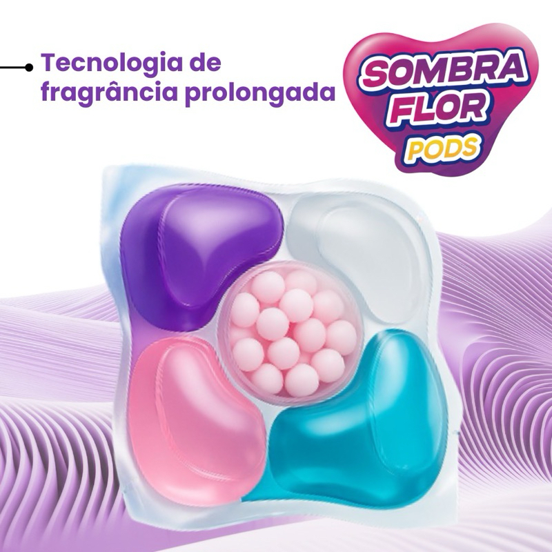Pods de Lavagem Sombra Flor 5 em 1 | 24 Unidades | Limpa, Perfuma e Protege Roupas