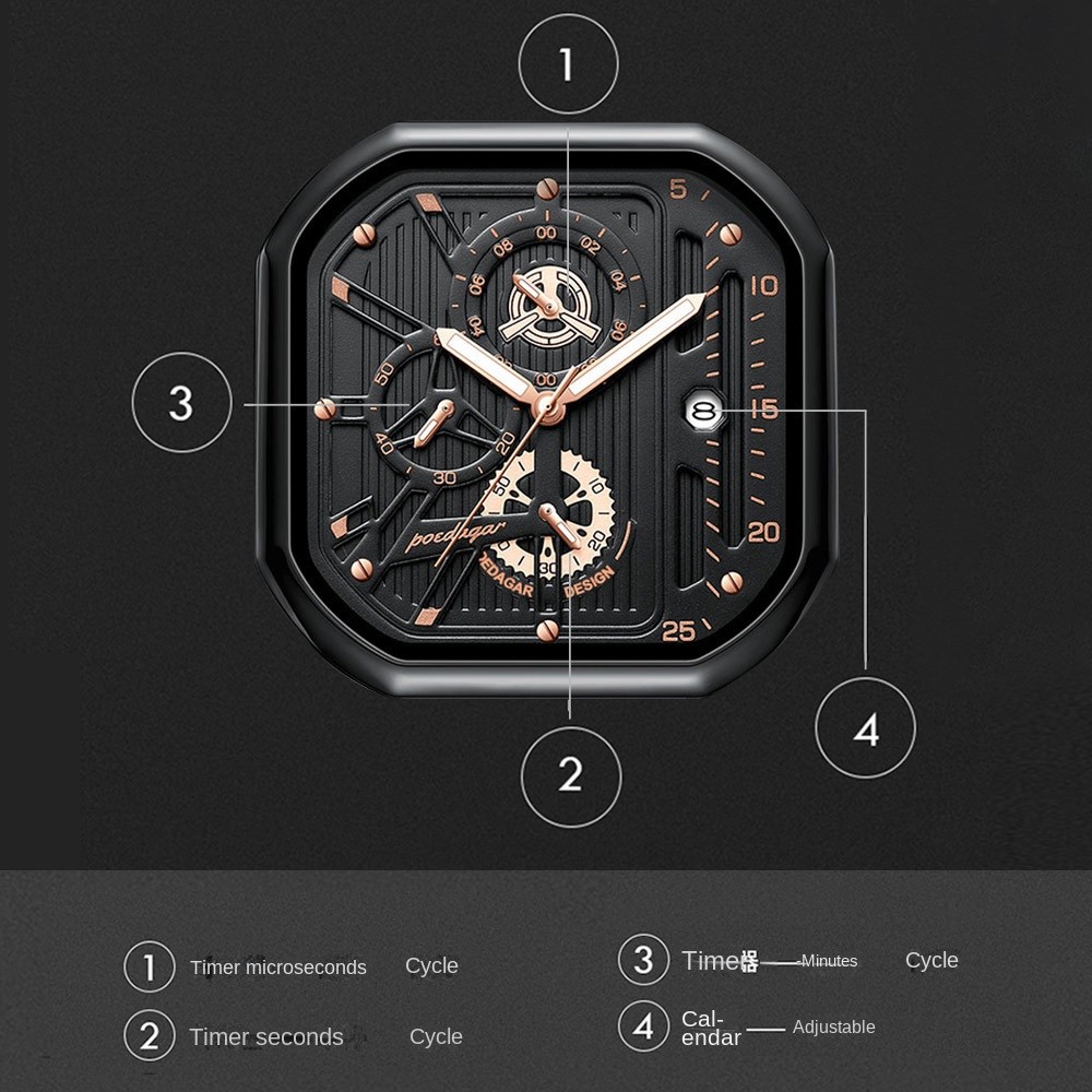 Poedagar Moda Novo Luminoso Multifuncional Relógio Masculino Bateria Suporta Calendário Cronômetro Cronometragem