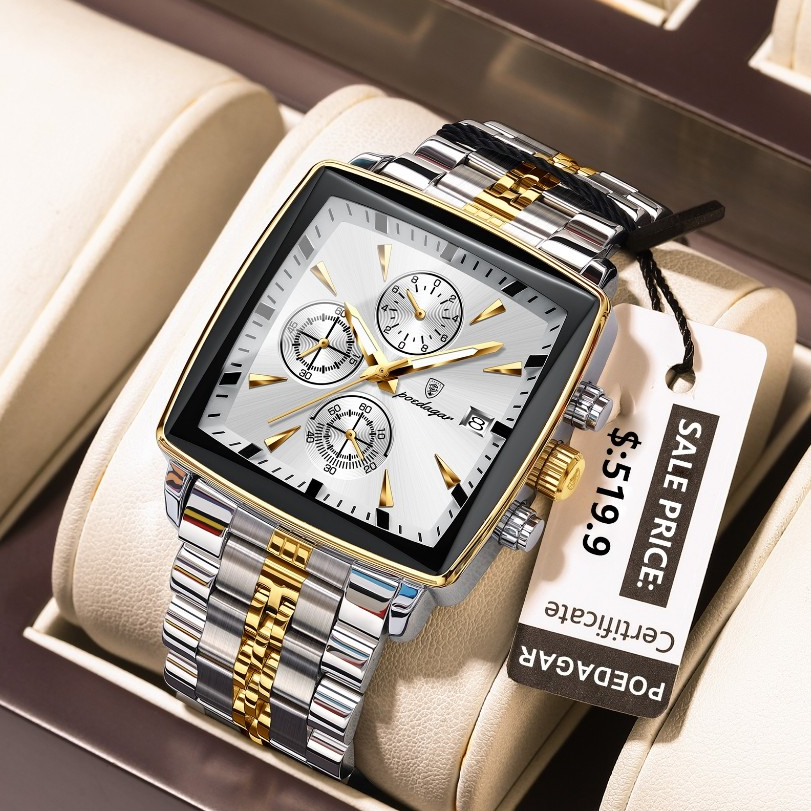 Catalogado na subcategoria Relógios Masculinos (de Relógios), POEDAGAR Relógio De Luxo Homem Cronógrafo Relógios Luminoso À Prova D'água Data Pulso De Aço Inoxidável Quartzo Para está à venda na Shopee Brasil por R$ 80,99 (72% de desconto sobre o preço original de R$ 289,25). Nota 4.9 de 5 na Shopee e 109 unidades vendidas, este produto se destaca pelo excelente custo-benefício.