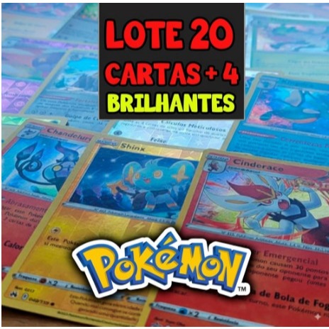 POKÉMON LOTE 20 CARTAS + 4 RARAS BRILHANTES