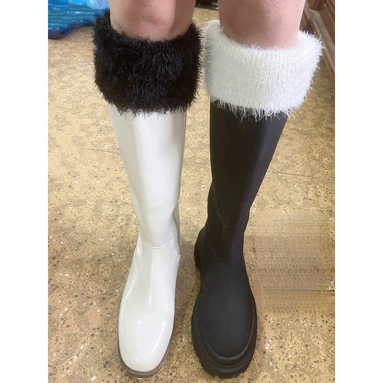 Polainas Femininas Cor Sólida Punhos De Pele Sintética Crochê Malha Bota Meias Curtas Peludas Leggings Quentes Capa Topp