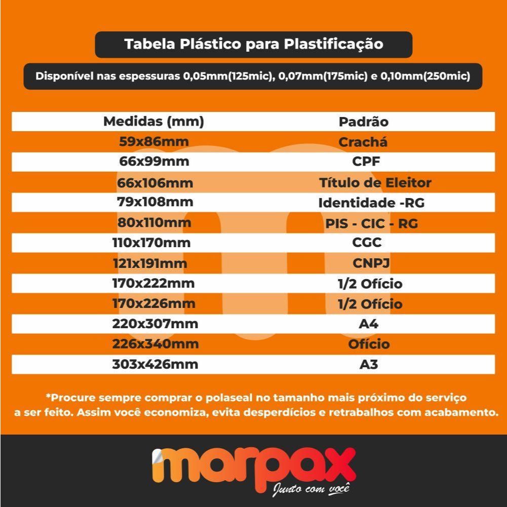CONHEÇA NOSSO POLASEAL PLÁSTICO PARA PLASTIFICAÇÃO A4 220X307X0,05MM 20UN O Polaseal Marpax Plástico para Plastificação brilhante em folha dupla e cantos arredondados pronto para plastificação. Produto de Primeira Linha, importado e fabricado com materiais de alta qualidade,respeitando um criterioso processo de produção, permitindo assim um acabamento perfeito em suas plastificações. O Polaseal é ideal para proteger documentos pois é a prova d'água e também possui proteção UV. Ideal para trabalhos como: comunicados, Placas de Identificação, cardápios, certidões, fotos, cartões e qualquer Documento até o tamanho A4. VANTAGENS DO POLASEAL MARPAX - Pronto para utilização - Possui um ótimo acabamento - Produto de primeira linha - Maior durabilidade - De fácil manuseio - Proteção UV - Prova d'água CARACTERÍSTICAS DO PRODUTO - Marca: Marpax - Tamanho: A4 (220x307mm) - Espessura: 0,05mm (125 micras) - Cantos: Arredondados - Acabamento: Brilho - Cor: Transparente - Embalagem: 20 folhas Duplas - Origem do Produto: Importado - Garantia: 2 meses Para um acabamento perfeito em seus trabalhos, use o Polaseal da Marpax. Qualidade Garantida!