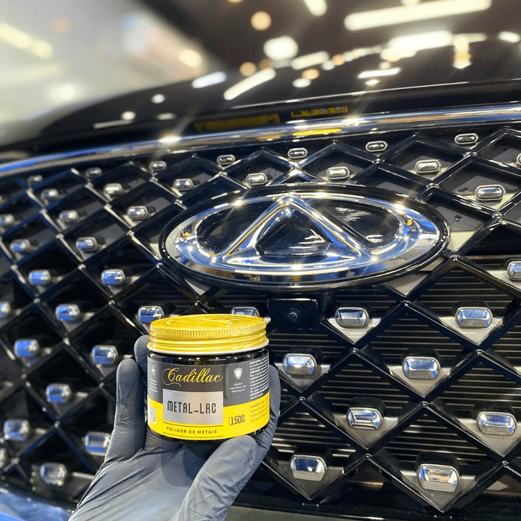 METAL-LAC 150G CADILLAC DESCRIÇÃO: Especialmente desenvolvido para remover contaminação, pontos de oxidação, marcas e manchas de diversos tipos de metais. Perfeito para acabar com aspectos opacos! Possui abrasivos com alto poder de corte, riquíssima capacidade de brilho e agentes anticorrosivos cuidadosamente selecionados para garantir proteção duradoura contra a oxidação e a opacidade dos metais.