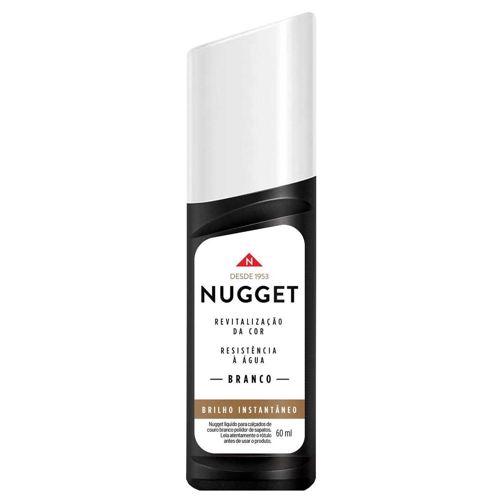 Polidor De Sapato Líquido Nugget Frasco 60ml Nugget Líquido é ideal para proporcionar o cuidado diário e o brilho aos calçados de couro. Benefícios: Nugget é ideal para a manutenção diária de calçados de couro, pois proporciona brilho espelhado para os calçados instantaneamente através de uma aplicação fácil, e que não necessita de polimento. Informações de uso: - Remova o pó dos sapatos. Antes de aplicar, agite a garrafa e pressione a esponja suavemente sobre o sapato até destravar a válvula de segurança (O líquido será liberado pela esponja). - Espalhe o produto sobre o couro, de preferência em uma mesma direção. - Não aplique o produto em excesso. Cor: Branco Embalagem : 1Frasco com 60 ML