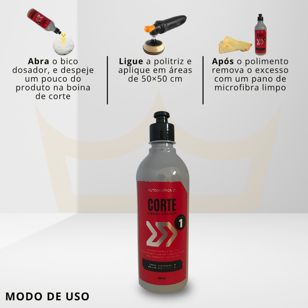 Precisa de um polidor de corte eficiente para remover riscos e marcas da pintura automotiva? Características do Produto: – Marca: Autoamerica – Modelo: Menzerna 1000 – Conteúdo: 300 ml – Comprimento: 22 cm – Alto poder de corte para remoção rápida de marcas de lixa, riscos e oxidações – Ideal para uso com politriz e boinas de corte Por que escolher este produto: – Fórmula alemã reconhecida pela eficiência e desempenho – Resultado rápido com acabamento uniforme – Reduz tempo de trabalho no processo de polimento – Compatível com diversas superfícies automotivas Dicas de Uso: – Agite antes de usar – Aplique pequena quantidade na boina – Trabalhe em áreas pequenas com movimentos cruzados – Remova o excesso com pano de microfibra limpo Perguntas Frequentes: – Pode ser usado em todos os tipos de pintura? Sim, é compatível com pinturas automotivas em geral. – Qual tipo de boina devo usar? Use boina de lã ou espuma de corte para melhores resultados. Garanta brilho, corte rápido e acabamento profissional com o Polidor Menzerna 1000.