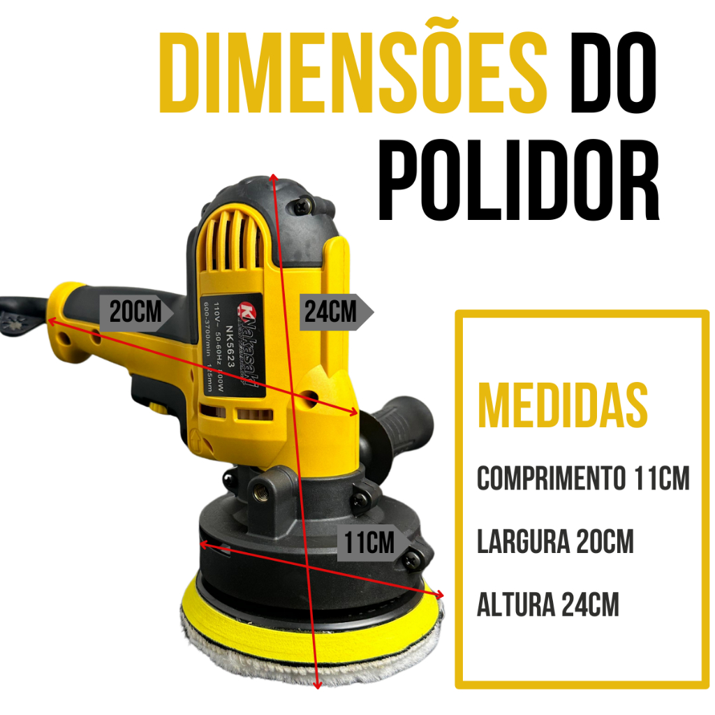 A Politriz 850W é a ferramenta ideal para quem busca resultado profissional com praticidade e versatilidade. Com seu design compacto e motor potente, ela é perfeita para: ✨ restauração automotiva, ✨ polimento de móveis, ✨ metais, ✨ e superfícies em geral. ___________________________________________________________ O formato ergonômico proporciona conforto, controle e segurança, permitindo trabalhos com precisão, inclusive em áreas confinadas. Leve, eficiente e fácil de usar, entrega acabamento impecável em cada aplicação. 🔵🟡 Disponível em duas cores: Azul e Amarelo. ___________________________________________________________ ⚙️ Especificações Técnicas ⚡ Potência: 850W 🔄 Rotação: 600 a 4500 RPM 📏 Mandril: 125mm 🎚️ Velocidades: Velocidades 1 e 2 utilizadas apenas para partida; rotação inicia efetivamente a partir da 3ª velocidade e vai até a 6ª velocidade! ___________________________________________________________ 🧰 Conteúdo da Embalagem ✔️ 01 Base com sistema de velcro 125mm (5”) ✔️ 01 Boina de espuma (aplicação) 125mm ✔️ 01 Boina de lã ✔️ 01 Empunhadura ergonômica ✔️ 01 Chave de aperto ✔️ 01 Par de carvão