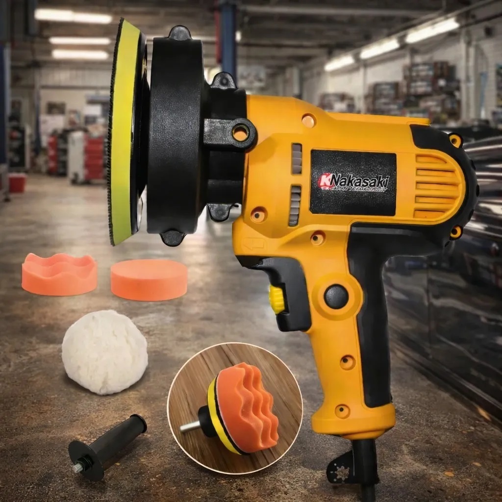 ESPECIFICAÇÕES TECNICAS: - Potência: 850W - Velocidade ajustável: 600 – 4500 RPM - Velocidade Fixa : Trava gatilho - Níveis de rotação: 6 posições (partida + regulagem gradual) - Voltagem: 110V ou 220V (escolha na compra) - Prato de Velcro: 5 polegadas DIFERENCIAIS DO PRODUTO: - Motor potente que garante polimento rápido e eficiente - Controle de velocidade para diferentes tipos de trabalho - Cabo emborrachado macio para maior conforto - Design compacto e ergonômico que reduz fadiga LOCAIS DE USO: - Setor automotivo (carros, motos, funilarias e oficinas) - Polimento de mármore e granitos - Móveis de madeira e superfícies diversas - Limpeza e revitalização de estofados - Lixamento de paredes com massa ITENS INLCUSOS: 1x Politriz Elétrica 850W 1x Empunhadura ergonômica 1x Espuma ondulada 1x Boinas de lã 1x Prato Velcro 5 Polegadas 1x Chave de aperto 1x Manual do usuário