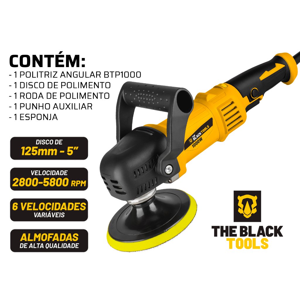 Politriz Angular Automotiva 5 Polegadas 1000w 2800-5800 Rpm Btp1000 The Black Tools