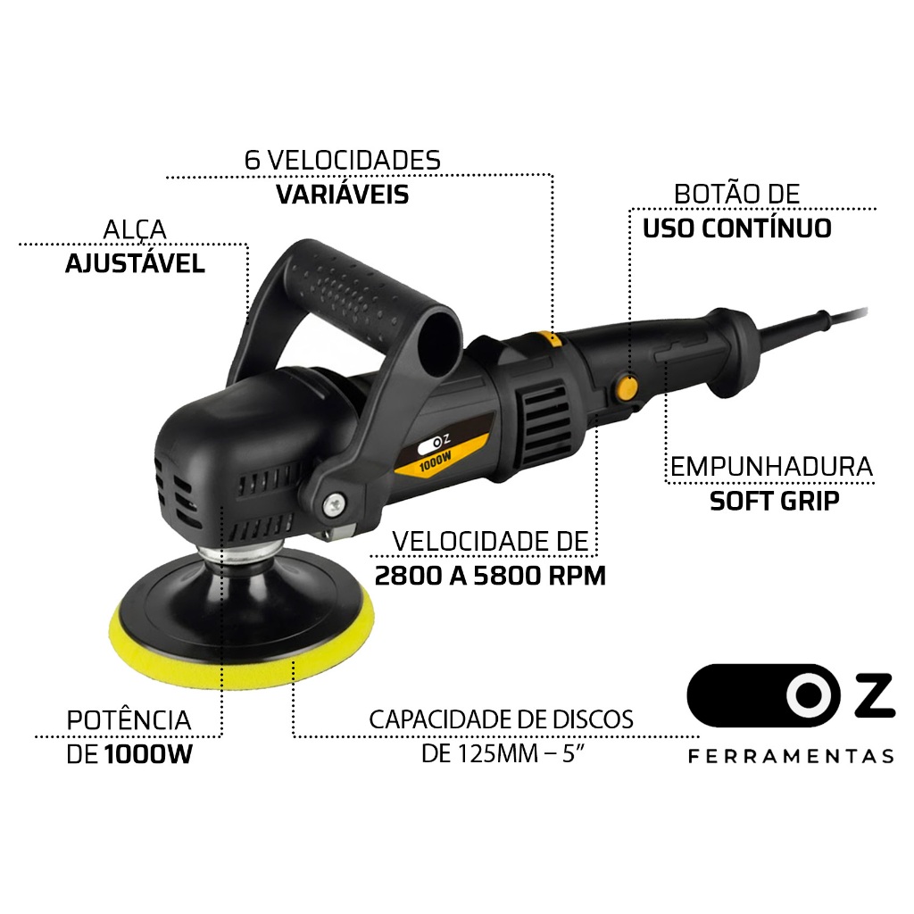 Politriz Angular Automotiva 5 Polegadas 1000w 2800-5800 Rpm PZ1200 Oz