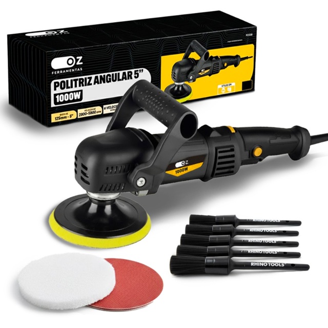 Politriz Angular Profissional Automotiva 5 Polegadas 1000w + Kit De 5 Pincel Detalhamento