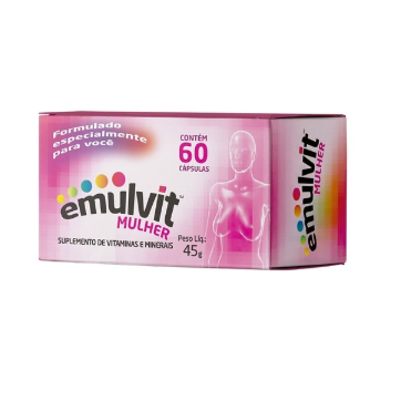 O Polivitamínico Emulvit Mulher (60 comprimidos) foi desenvolvido para suprir as necessidades diárias da mulher. Contém 21 vitaminas e minerais, como ferro, cálcio, zinco, biotina e vitaminas do complexo B. Auxilia na saúde da pele, cabelo, unhas e imunidade. Uso diário, livre de glúten e lactose.
