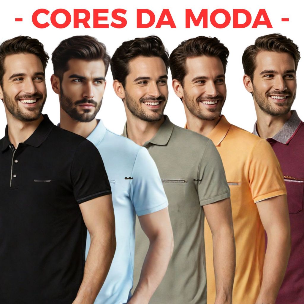 Polo Masculina Cores Variadas Com Bolso Algodão Premium Manga Curta Estilo Casual