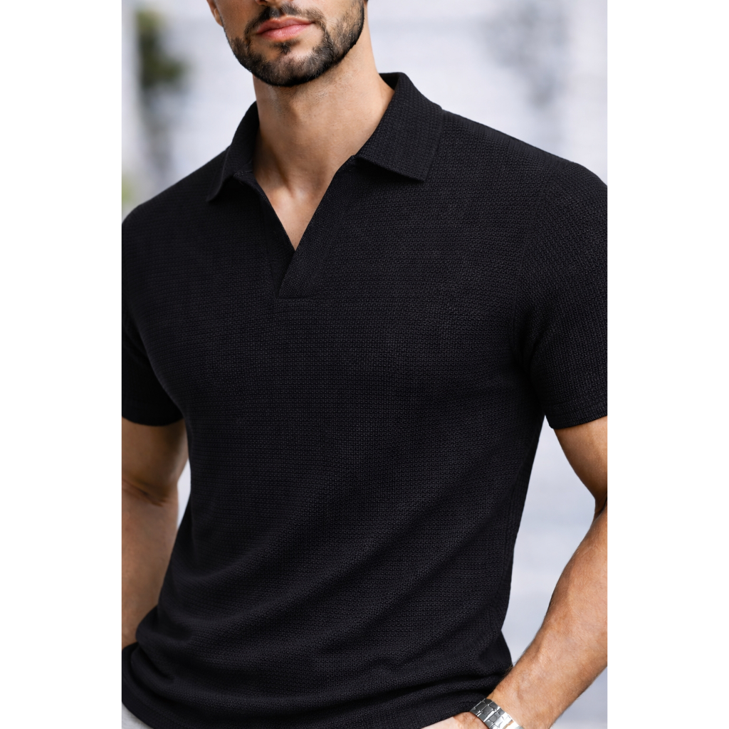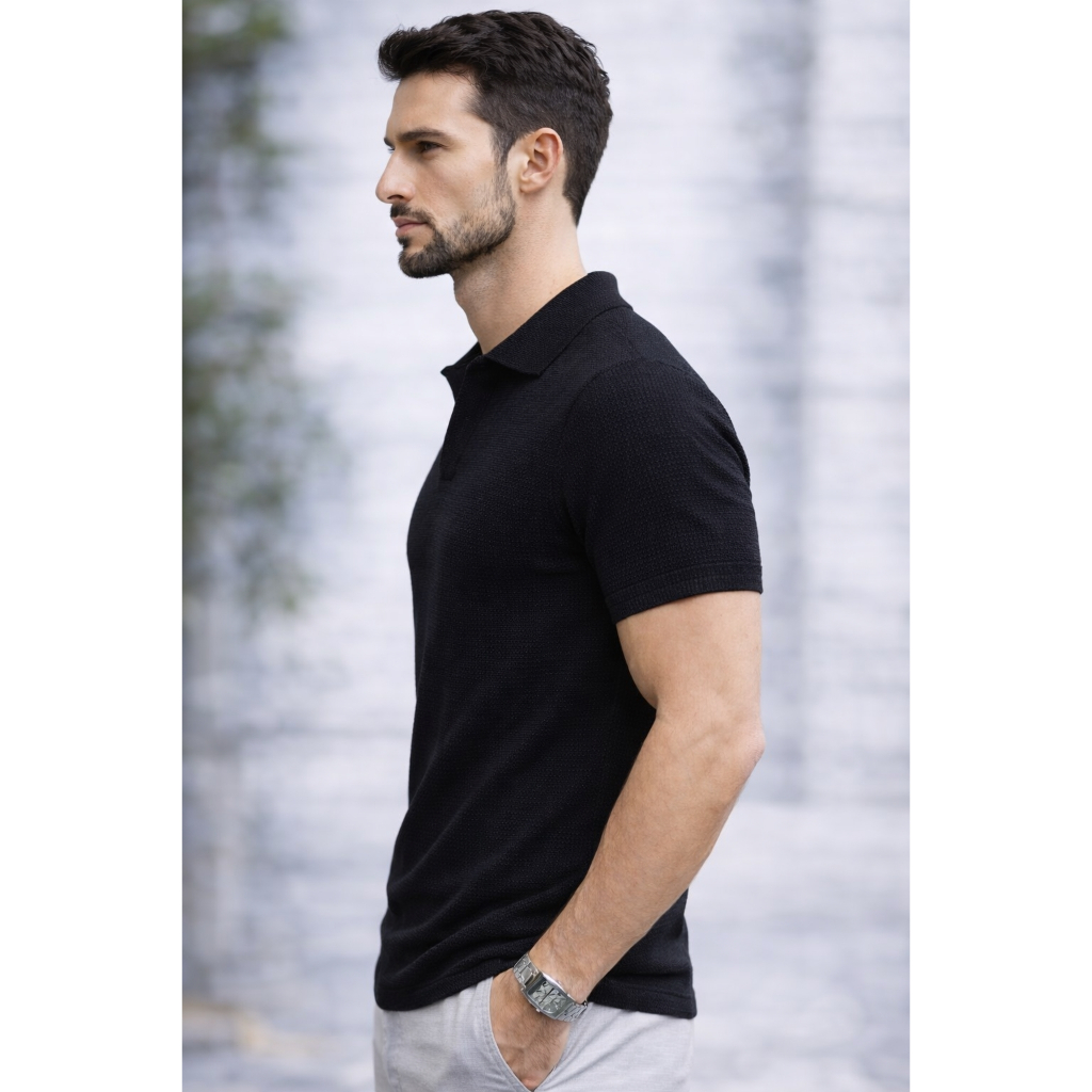 Polo Masculina Preta Premium Texrurizada Malha Encorpada Grossa Slim Elegante Moderna