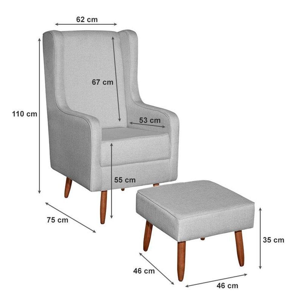 Poltrona Amamentação Aquila Com Puff Linho Cinza Pés Palito - Fratello