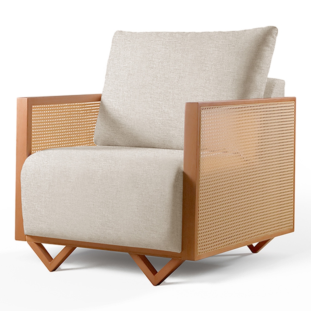 Poltrona Arthur Madeira Maciça Palha Rattan Castellar Móbile