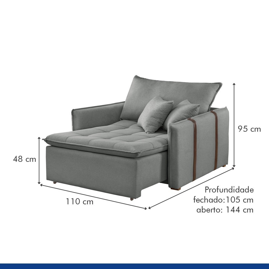 Poltrona Cama 110cm Detroid Yescasa Linho Cinza/Escuro