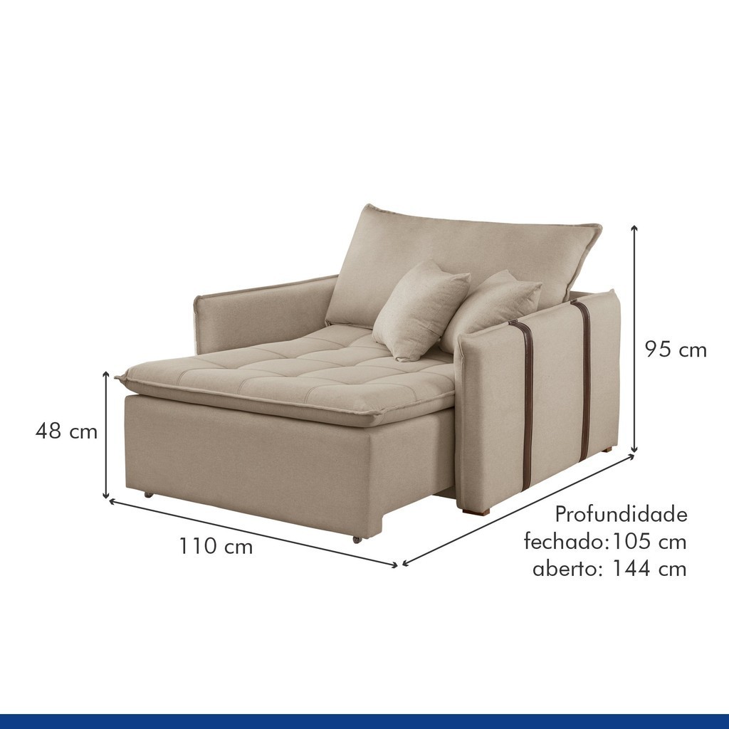 Poltrona Cama 110cm Detroid Yescasa Linho Cru