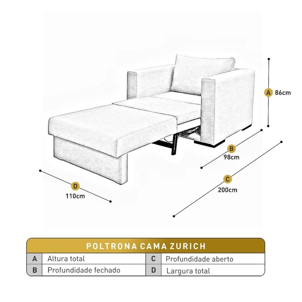 POLTRONA CAMA HERMES Versatilidade e Estilo: Une o útil ao agradável Versátil e funcional Colchão de 1,95 m ideal para descanso Dimensões: Altura: 86 cm Largura total: 1,10 m Profundidade fechado: 98 cm Profundidade total aberto: 2,00 m Largura do colchão: 78 cm Profundidade do colchão: 1,95 m Largura do braço: 16 cm Especificações Técnicas: Encosto: Almofada solta com fibra 100% siliconada Assento: Espuma D28 Soft, manta acrílica de gramatura 200, molas Bonnel Estrutura: Madeira reflorestada, seca e imunizada Pés: Eucalipto na cor castanho Cuidados e Limpeza: Uso indicado para áreas cobertas Limpeza com pano levemente umedecido e seco Evitar escovas e produtos químicos Atenção: Imagens reais, tonalidade pode variar Verificar dimensões para acesso ao local de uso Estilo: Moderno Peso (kg): 48.5 Garantia: 03 Meses Altura (cm): 86 Estampado: Não Extensível: Sim Largura (cm): 110 Possui Pés: Sim Acompanha Puff: Não Possui Rodízio: Não Suporta Até (kg): 120 Design Assinado: Não Profundidade (cm): 98 Tipo de Assento: Fixo Tipo de Encosto: Fixo Material dos Pés: Madeira Maciça Tipo de Poltrona: Decorativa Altura do Encosto: 45 Material do Braço: Madeira Maciça Origem do Produto: Nacional Ambiente Principal: Sala de Estar Material Principal: Madeira Modelo de Poltrona: Chaise Almofada do Assento: Removível Almofada do Encosto: Removível Enchimento do Braço: Espuma D-26 Quantidade de Itens: 1 Tecido Predominante: Linho Densidade do Assento: D-28 Encosto para a Cabeça: Não Material da Estrutura: Madeira de Reflorestamento Possui Apoio para Braços: Sim Serviço Impermeabilização: 102610509 Acompanha Almofadas Extras: Não Possui Percintas Elásticas: Sim Altura do Assento até o Chão: 45 Profundidade Quando Estendido: 200 Informações Complementares (Novo): Poltrona cama super confortável com assento em espuma D28 Marca: Castellar Móbile Cor: Cinza Cor do Produto: Cinza Itens Inclusos: 1 Poltrona Cama Cor Predominante: Cinza Linha ou Coleção: Premium