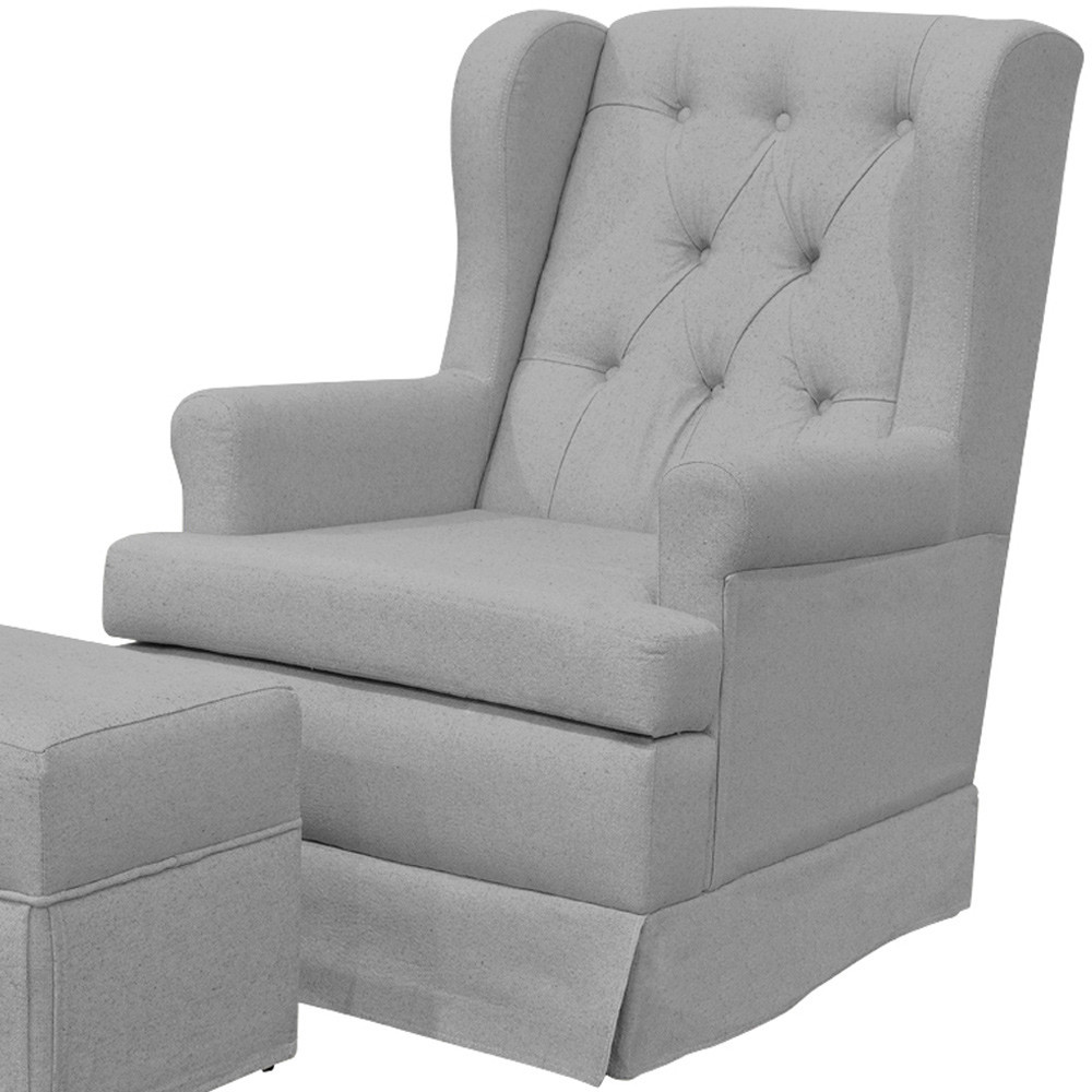 Poltrona de Amamentação com Balanço e Puff Helena P02 Capitonê Linho Cinza - Lyam Decor
