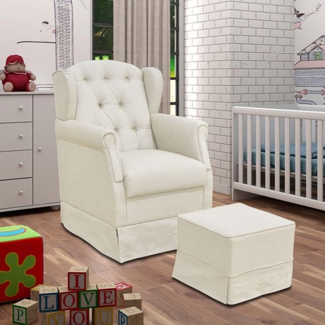 Poltrona de Amamentação com Balanço e Puff Lívia Linho P04 Bege - Mpozenato