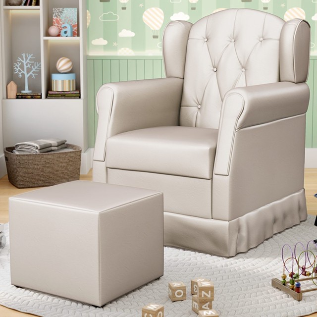 Poltrona de Amamentação e Descanso com Balanço e Puff Lucy P04 Sintético Bege - Mpozenato