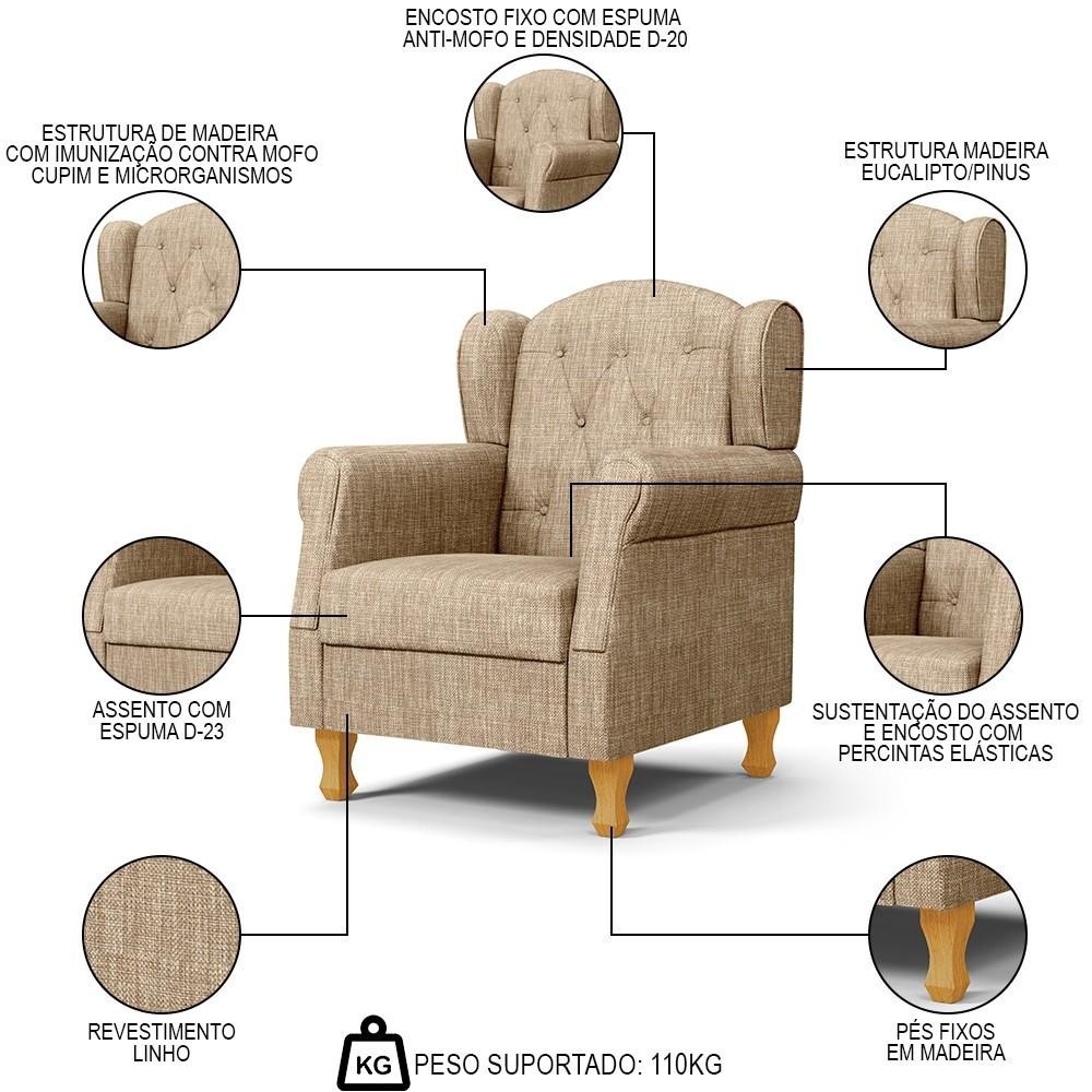 Poltrona de Amamentação e Descanso Pés de Madeira e Puff Lucy P04 Linho Bege Escuro - Mpozenato