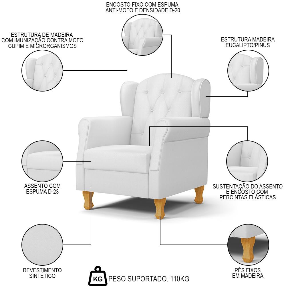 Poltrona de Amamentação Pés Madeira e Puff Letícia Sintético Branco - Phoenix