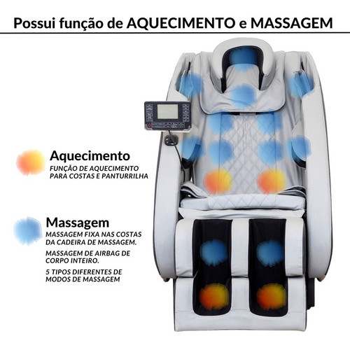 Poltrona De Massagem Madri Cinza 3D Com Aquecimento Função Gravidade Zero Reclinável Relaxante Bivolt