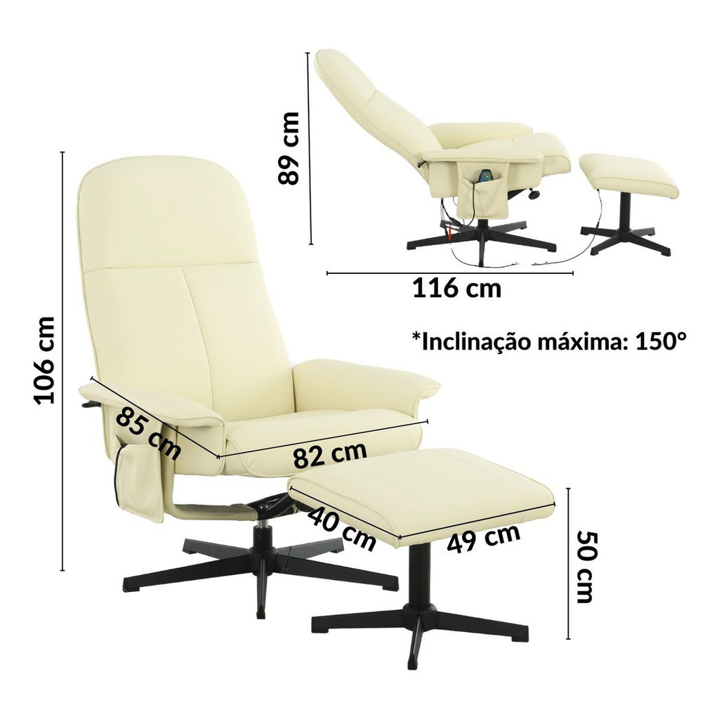 Poltrona De Massagem Reclinável Apoio Pés Bege Chicago