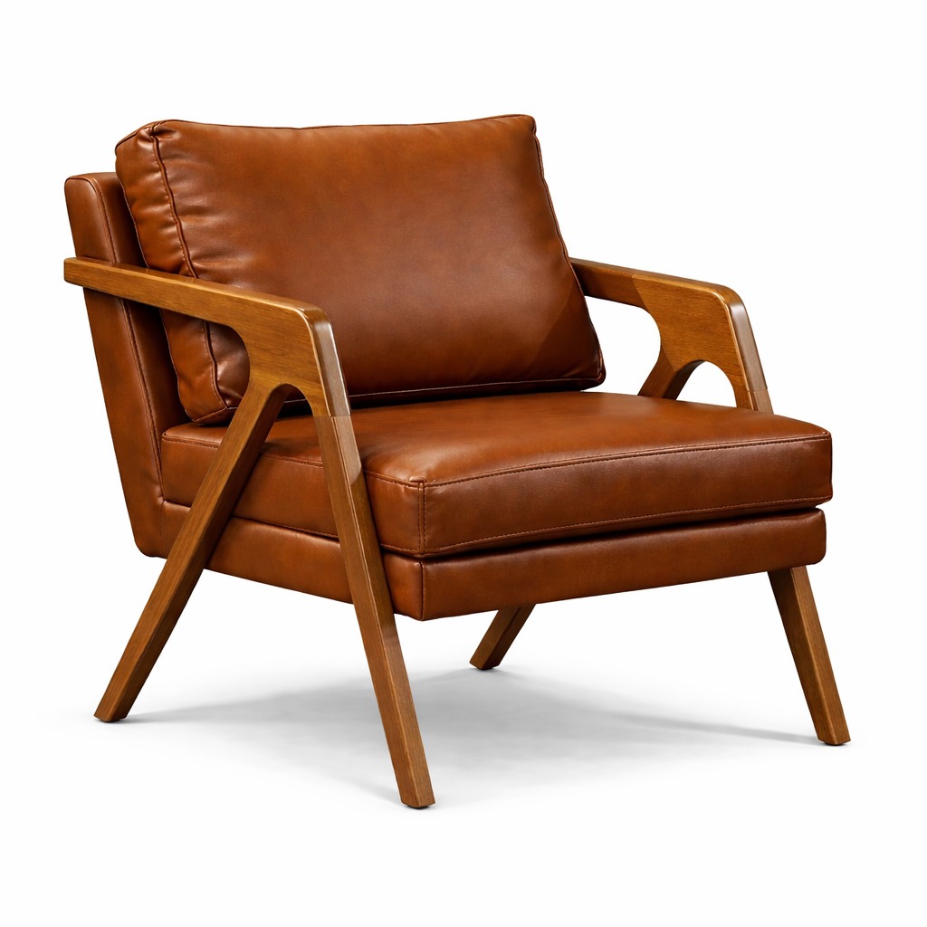 Poltrona Decorativa Mona Luxo Madeira Maciça Desenho Do Tecido Corino Caramelo Variadas