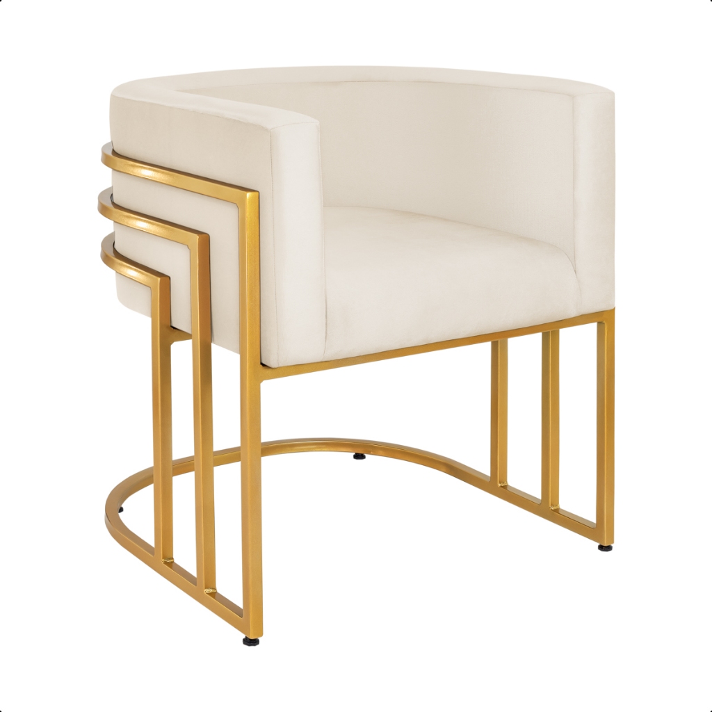 Poltrona decorativa para sala com almofada veludo macia base metálica Luxo 3 Ferros