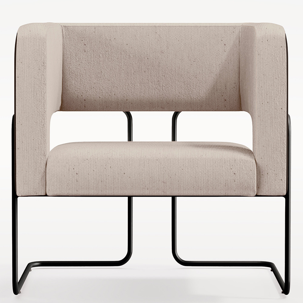 Poltrona Decorativa Scarlett D02 Base Aço Preto Corano Preto C-05 Linho Bege C-107 - Lyam Decor