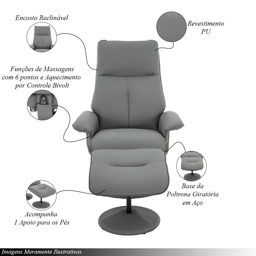 Poltrona do Papai Elétrica com Massagem e Giratória Nebraska com Apoio de Pés Pu Fendi G56 - Rivatti