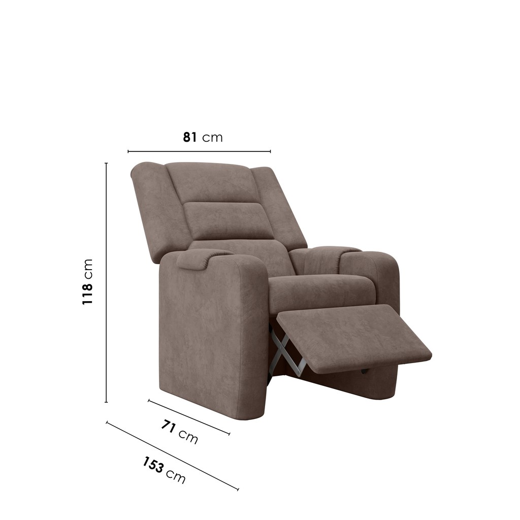 Poltrona do Papai Mônica de 2 estágios: Posição 1 (sentado), posição 2 (descanso). Para dar mais flexibilidade e resistência, é usado percintas elásticas em sua estrutura, garantindo sua durabilidade, com espuma D-26. Um modelo ideal para a sua sala de estar para relaxar em suas horas de lazer. Com detalhes em seu encosto e linhas retas, ela traz mais versatilidade ao seu ambiente. Sem dúvidas é o que faltava para completar seu ambiente! Estilo: Industrial Peso (kg): 34 Garantia: 03 Meses Altura (cm): 118 Estampado: Não Extensível: Sim Largura (cm): 81 Possui Pés: 4 Acompanha Puff: Não Altura dos Pés: 2 Possui Rodízio: Não Suporta Até (kg): 150 Profundidade (cm): 81 Tipo de Assento: Fixo Tipo de Encosto: Regulável Tipo de Poltrona: Do papai Altura do Encosto: 76 Origem do Produto: Nacional Ambiente Principal: Sala de Estar Firmeza do Assento: Médio Material Principal: Madeira Modelo de Poltrona: Reclinável Almofada do Assento: Fixa Almofada do Encosto: Não Possui Enchimento do Braço: Espuma D-26 Tecido Predominante: Veludo Densidade do Assento: D-26 Enchimento do Assento: Espuma D-26 Enchimento do Encosto: Espuma Encosto para a Cabeça: Sim Material da Estrutura: Madeira Eucalipto Possui Apoio para Braços: Sim Serviço Impermeabilização: 102610509 Tipo de Espuma do Assento: Espuma Convencional Acompanha Almofadas Extras: Não Possui Percintas Elásticas: Sim Altura do Assento até o Chão: 49 Profundidade Quando Estendido: 152 Marca: Yescasa Cor: Bege Cor do Produto: Nobre Bege Cor Predominante: Bege