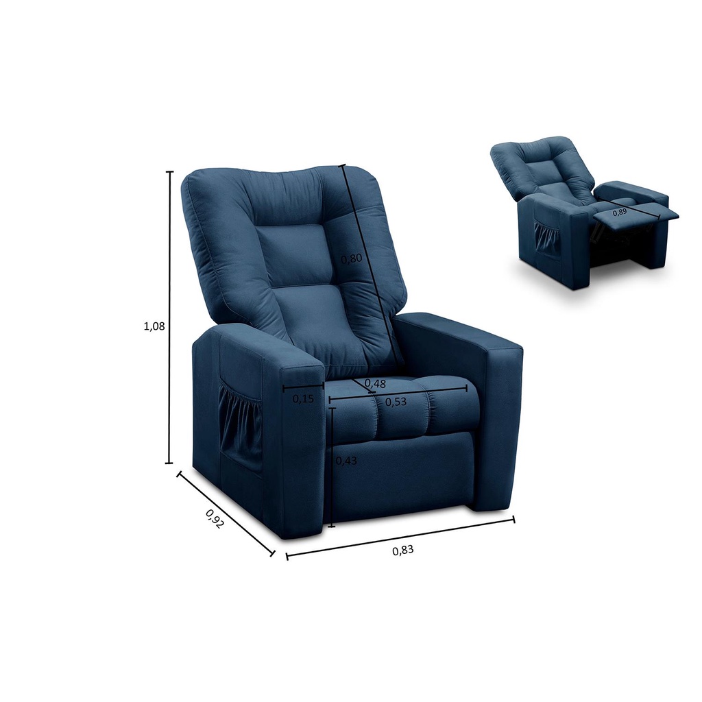 Poltrona do Papai Reclinável Itália Suede Azul Adonai Estofados