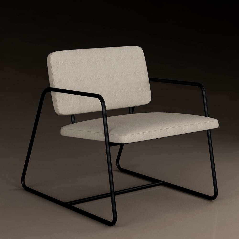 Poltrona Estofada Sintra Estrutura Metalon Preto Fosco/Suede Bege - Móveis Arapongas