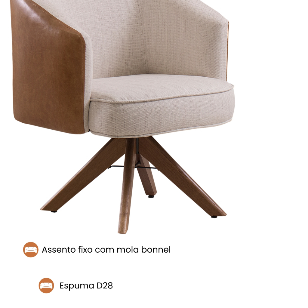 Transforme o seu ambiente com uma peça que une conforto extremo, acabamento refinado e design contemporâneo. A Poltrona Giratória é a escolha perfeita para quem busca elegância sem abrir mão da funcionalidade e bem-estar. 🛋️ Design Sofisticado com Mistura de Materiais Premium Com um visual moderno e acolhedor, esta poltrona combina: Assento e encosto em linho bege, com toque macio e visual clean. Laterais em Persinta Italiana, um material resistente que remete ao couro, oferecendo charme rústico e sofisticado ao mesmo tempo. Base giratória em madeira de reflorestamento, ecologicamente correta e com acabamento em tom amadeirado natural, garantindo estabilidade e beleza. ✅ Medidas ideais para qualquer espaço Altura: 80 cm Largura: 64 cm Profundidade: 70 cm Compacta e versátil, essa poltrona é ideal para salas de estar, recepções, escritórios, quartos ou ambientes comerciais. 🪑 Conforto pensado para uso diário Assento fixo com mola bonnel e espuma D28, oferecendo sustentação sem perder a maciez. Encosto com espuma D26, que garante apoio confortável para as costas mesmo em longos períodos de uso. O equilíbrio ideal entre firmeza e conforto para quem valoriza qualidade! 🌱 Sustentabilidade e resistência A estrutura da poltrona é produzida com madeira de reflorestamento, sendo uma escolha consciente para quem valoriza responsabilidade ambiental, sem abrir mão da durabilidade. Suporta até 130kg. Por que escolher esta Poltrona Giratória? ✔️ Design exclusivo que valoriza qualquer ambiente ✔️ Materiais resistentes de alto padrão ✔️ Conforto ergonômico para seu dia a dia ✔️ Base giratória que proporciona mobilidade sem esforço ✔️ Acabamento refinado que impressiona ✔️ Produto nacional com produção sustentável 📦 Envio seguro e embalagem reforçada! Receba sua poltrona com total segurança! Nossa embalagem é projetada para proteger o produto durante o transporte, garantindo que ele chegue até você em perfeito estado. 🛠️ Fácil de montar Acompanha manual de instruções simples e prático. Em poucos passos, sua nova poltrona estará pronta para uso. 💬 Avaliações 5 estrelas garantem a satisfação de quem já comprou! Invista em um móvel que vai além da estética: oferece durabilidade, conforto e sofisticação. Surpreenda-se com a transformação que ela pode trazer para seu espaço! 🔒 Compra segura • Garantia de fábrica • Qualidade garantida 🛒 Adicione agora ao carrinho e eleve o nível da sua decoração!
