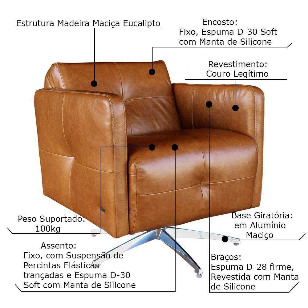 Poltrona Giratória para Sala de Estar Astana Couro Marrom G40 - Gran Belo