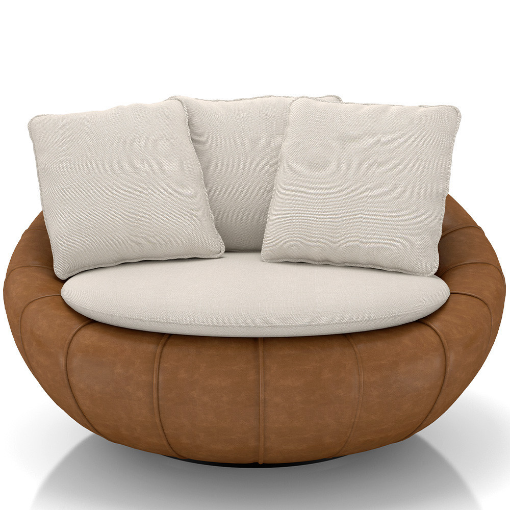 Poltrona Giratória Para Sala de Estar Decorativa Kira M03 Couríssimo Whisky Linho Cru - Lyam Decor