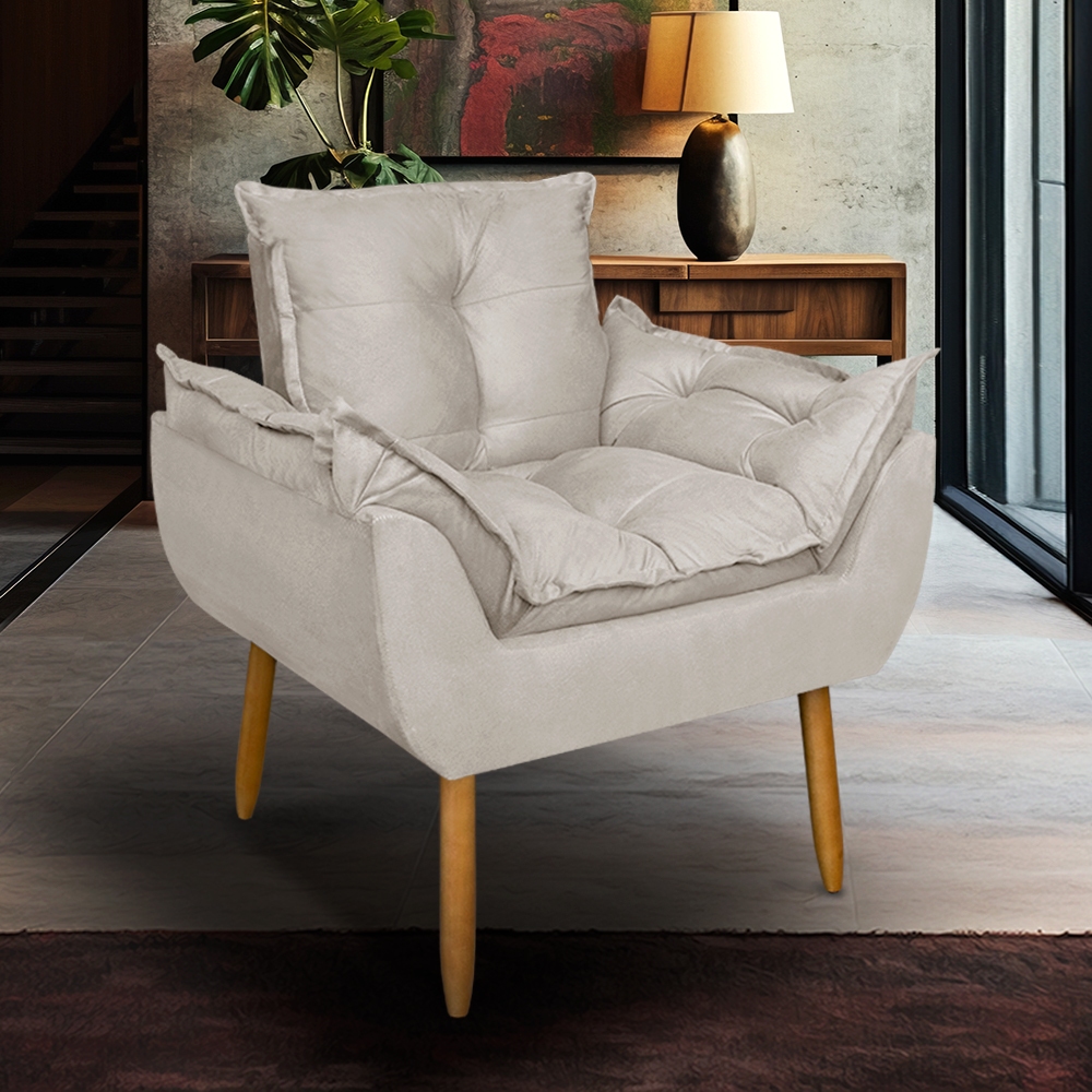 Poltrona para Sala de Estar Recepção Opala Pé Palito Suede
