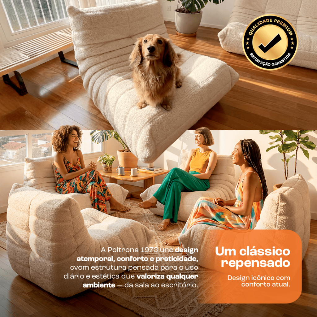 Poltrona Puff Design Retro 1973 em Boucle Macio e Confortável – Sofá na Caixa