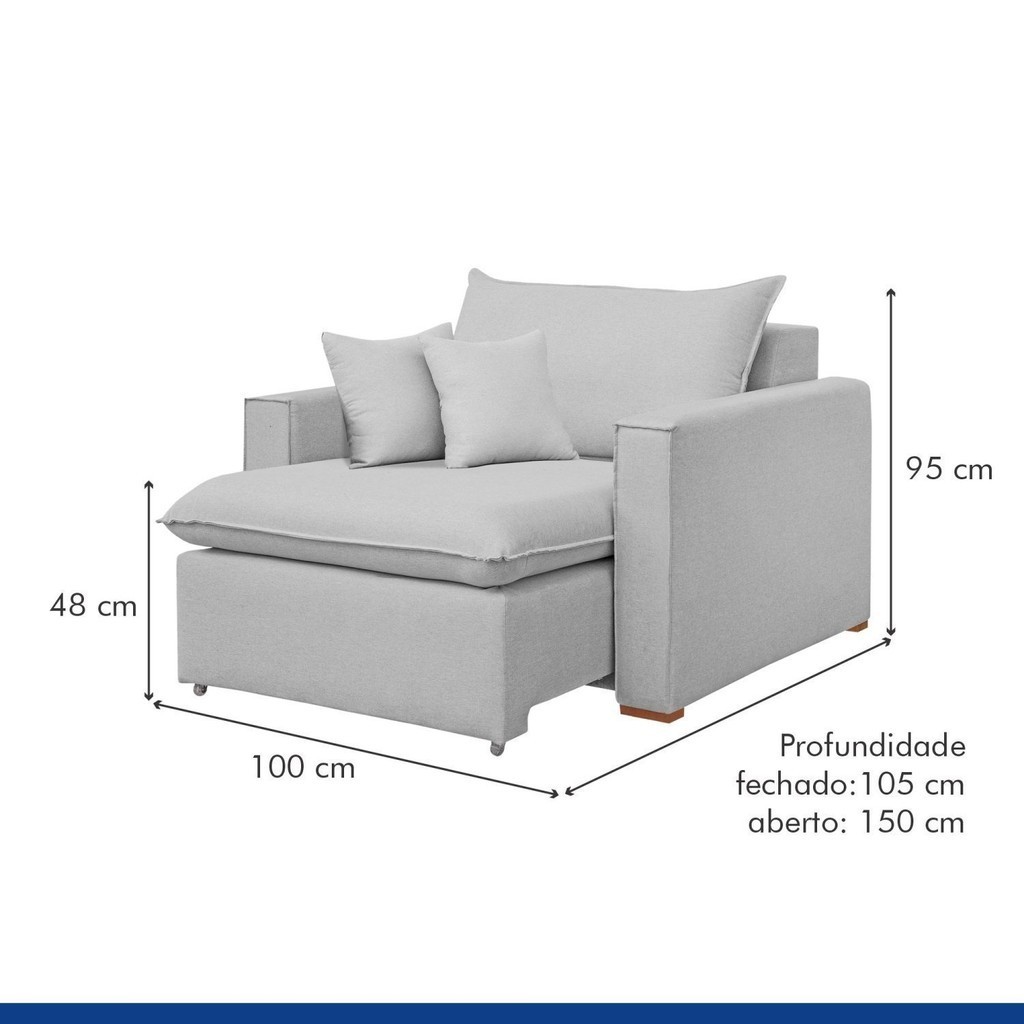 Poltrona Retrátil 100cm Barcelona Linho Linho Gelo