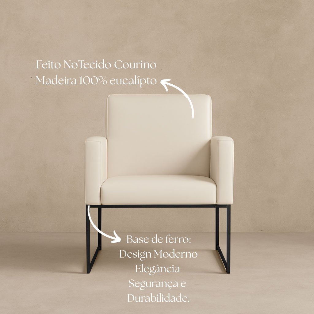 Poltronas Courino Salão/Recepção com 4 cores disponíveis - Base Ferro Preto