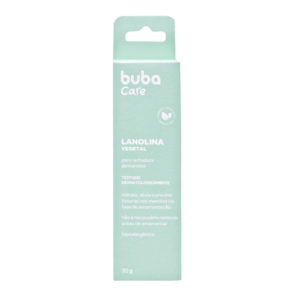 Pomada para Mamilo Seio 30g Lanolina Vegetal Buba Pomada para rachadura seio Para rachadura de mamilos Hidrata, alivia e previne fissuras nos mamilos na fase de amamentação. - Marca: Buba - Hipoalergênico - Testado dermatologicamente - Remover antes da amamentação - Livre de parabenos, sulfatos e corantes - Vegano, cruelty free e reciclável