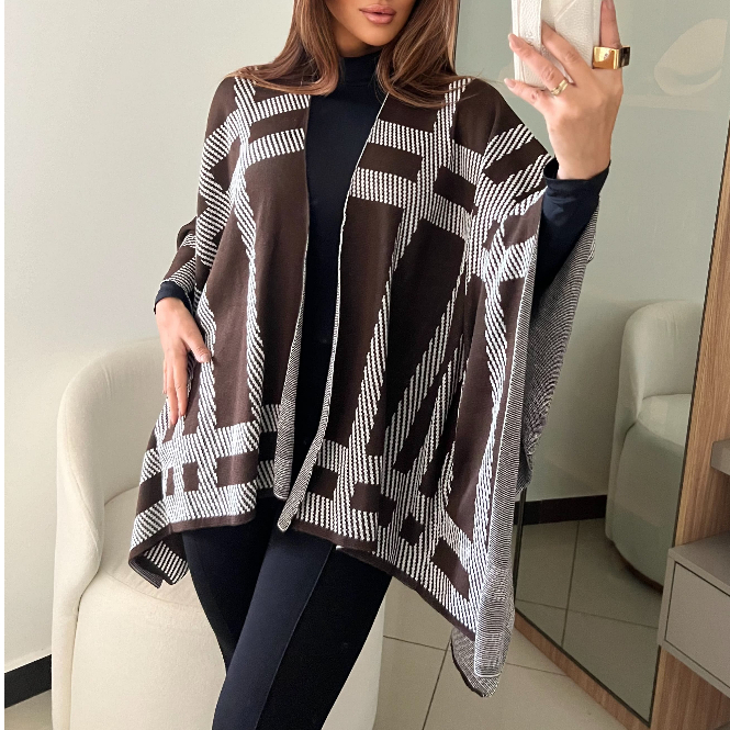 Poncho Capa Blusa Feminina De Inverno Tricô Longo Sobretudo