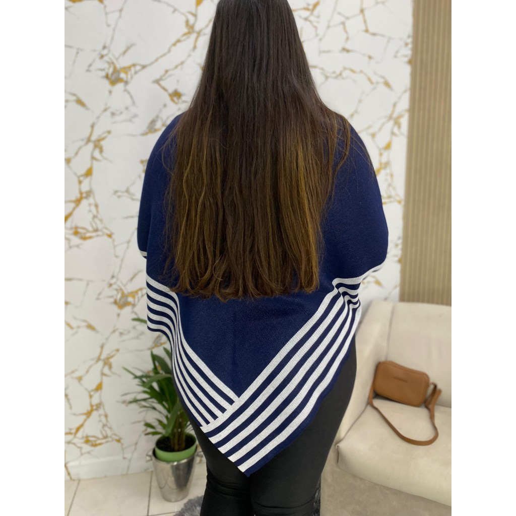Poncho Feminino Tricot listrado Inverno 2025 xale Listrado Capa Elegante Moda Lançamento Blogueira.
