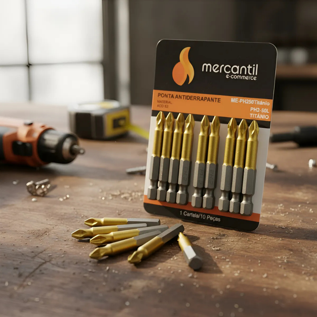 Ponta Bits PH2 50mm Kit 10 peças Titânio Ponteira Magnética Antiderrapante Parafusadeira Philips Imã Mercantil