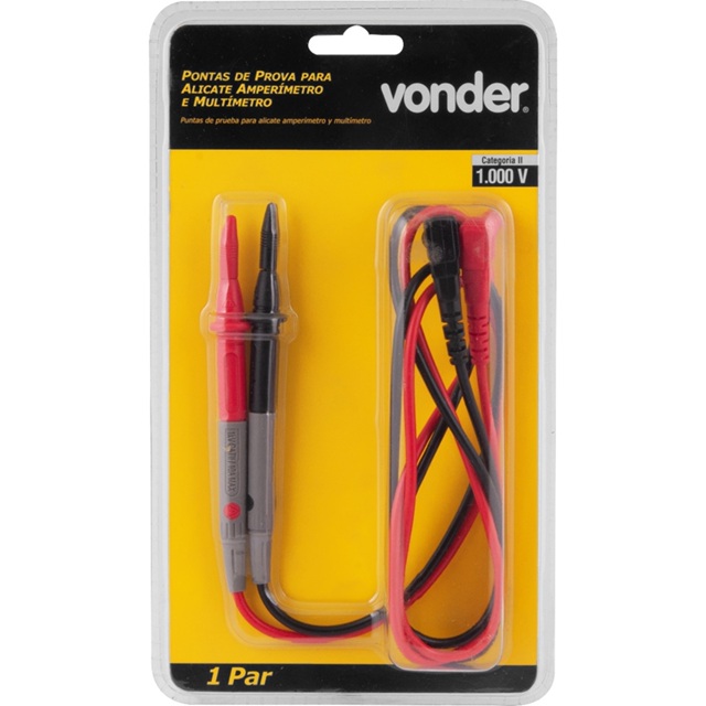 Pontas de prova para alicate amperímetro e multímetro, CAT II 1.000V - CAT III 600V - Vonder