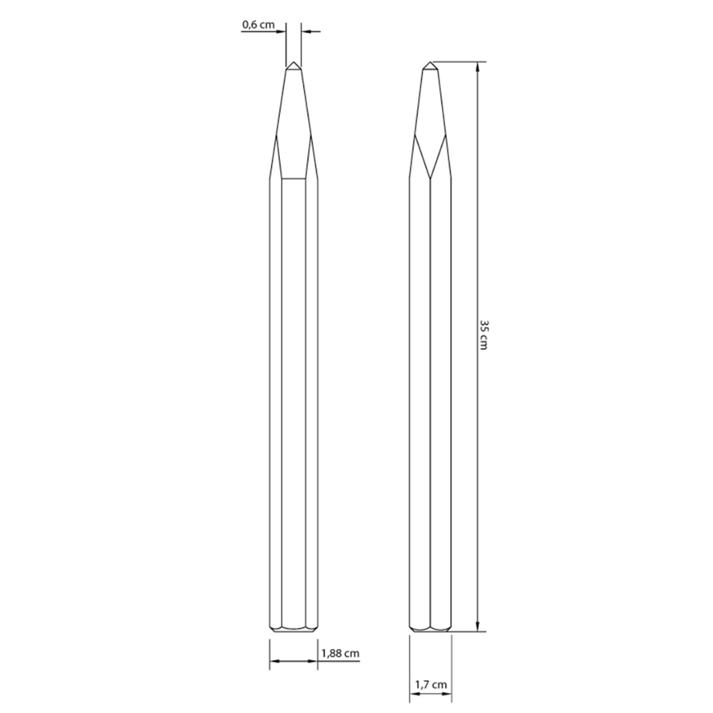 Ponteiro Sextavado 14" 35cm Tramontina Master 42705/114 Descrição do Produto: - Utilizado em trabalhos na construção civil ou pequenos reparos, o Ponteiro Sextavado 14 Polegadas Tramontina é uma ferramenta ideal para diferentes projetos; - Projetado para a perfuração em pedras, concreto e tijolos, possui 14 polegadas e é produzido em aço especial com barra sextavada. Características: - Corpo em aço especial; - Barra sextavada; - Têmpera por indução nas duas extremidades; - Estas ferramentas de impacto tem dureza diferenciada no gume de corte ou ponta e na face de impacto que será golpeada; - As ferramentas são submetidas a testes de aplicação prática para garantir sua resistência mecânica em uso intenso; - A pintura eletrostática garante proteção excelente contra a corrosão. Dados Técnicos: - Marca: Tramontina Master; - Referência: 42705/114; - Peso: 0,69 kg; - Altura: 1,7 cm; - Largura: 1,88 cm; - Tamanho da ponta: 0,6 cm; - Comprimento: 35 cm; - Dimensões embalagem: 420x75x25 mm. Componentes Inclusos na Embalagem: - 01 Ponteiro Sextavado 14" 35cm Tramontina Master 42705/114.
